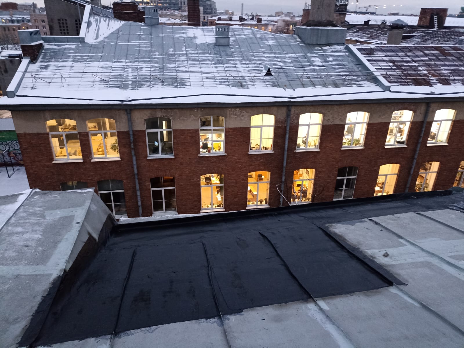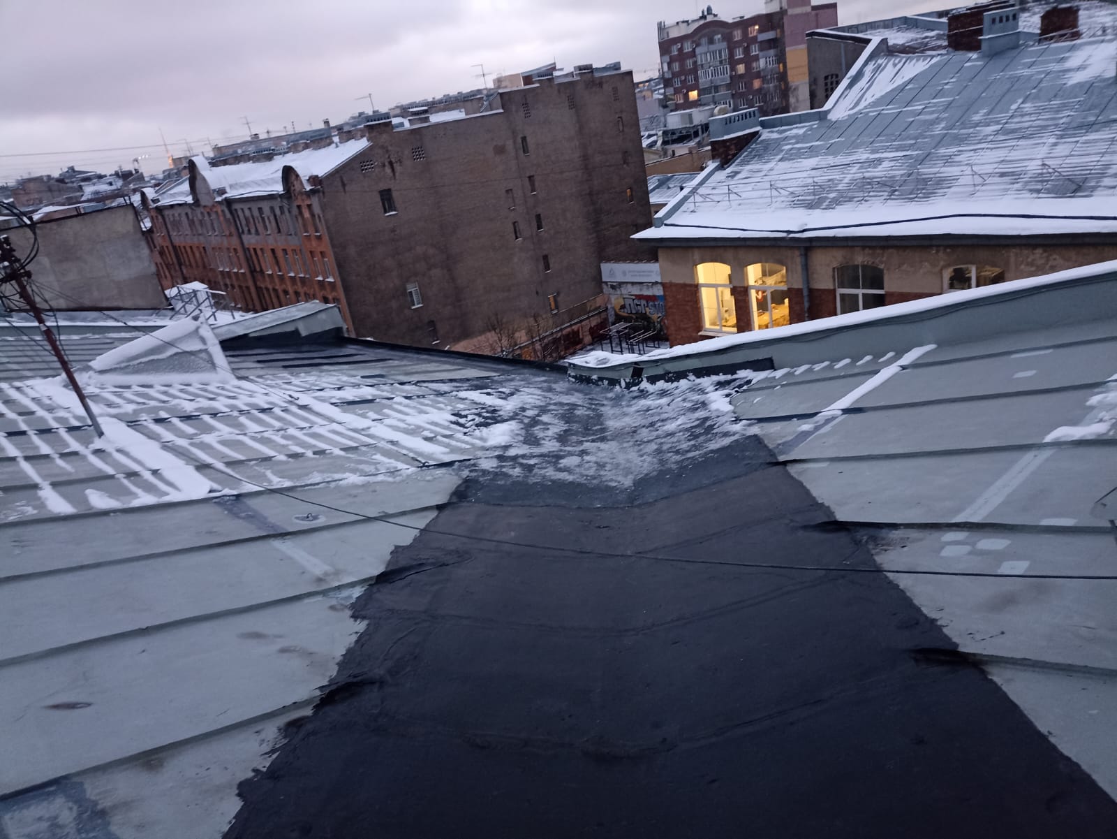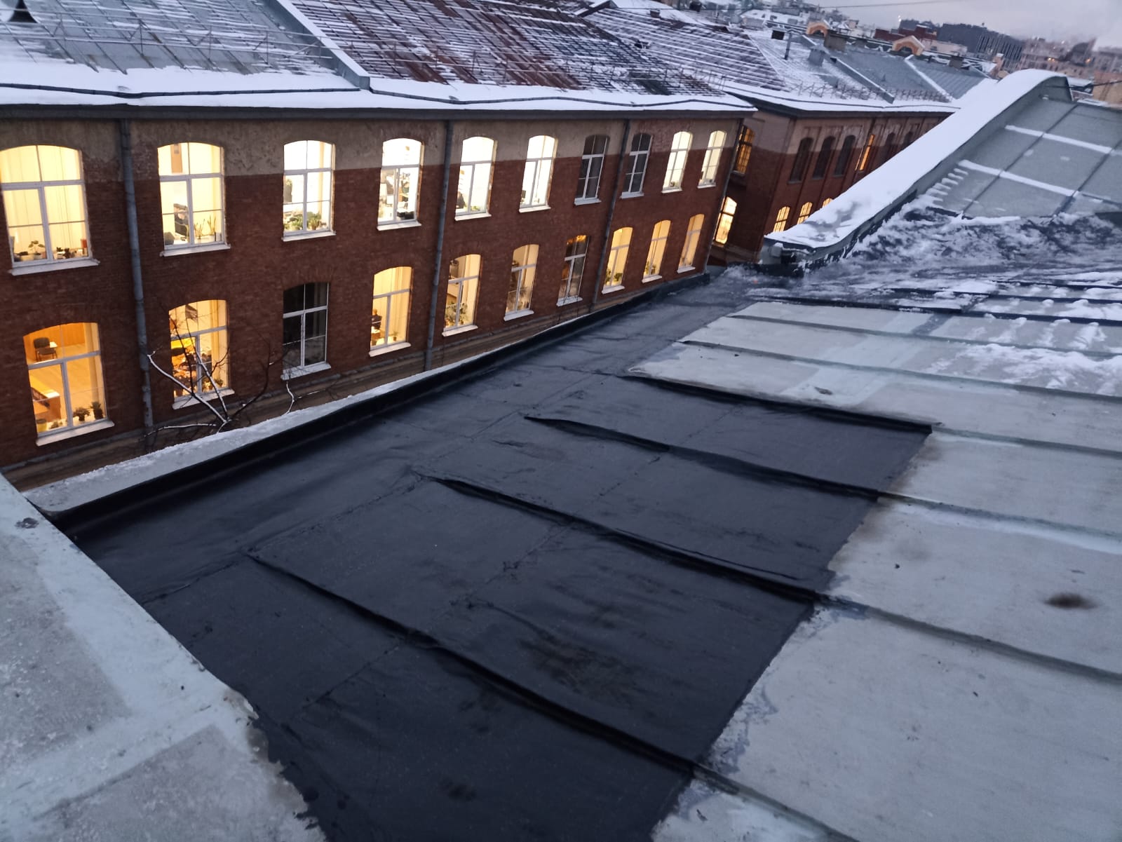 Завершён частичный ремонт крыши дома 27 лит.А по Гатчинской ул. методом наплавления изопласта.
