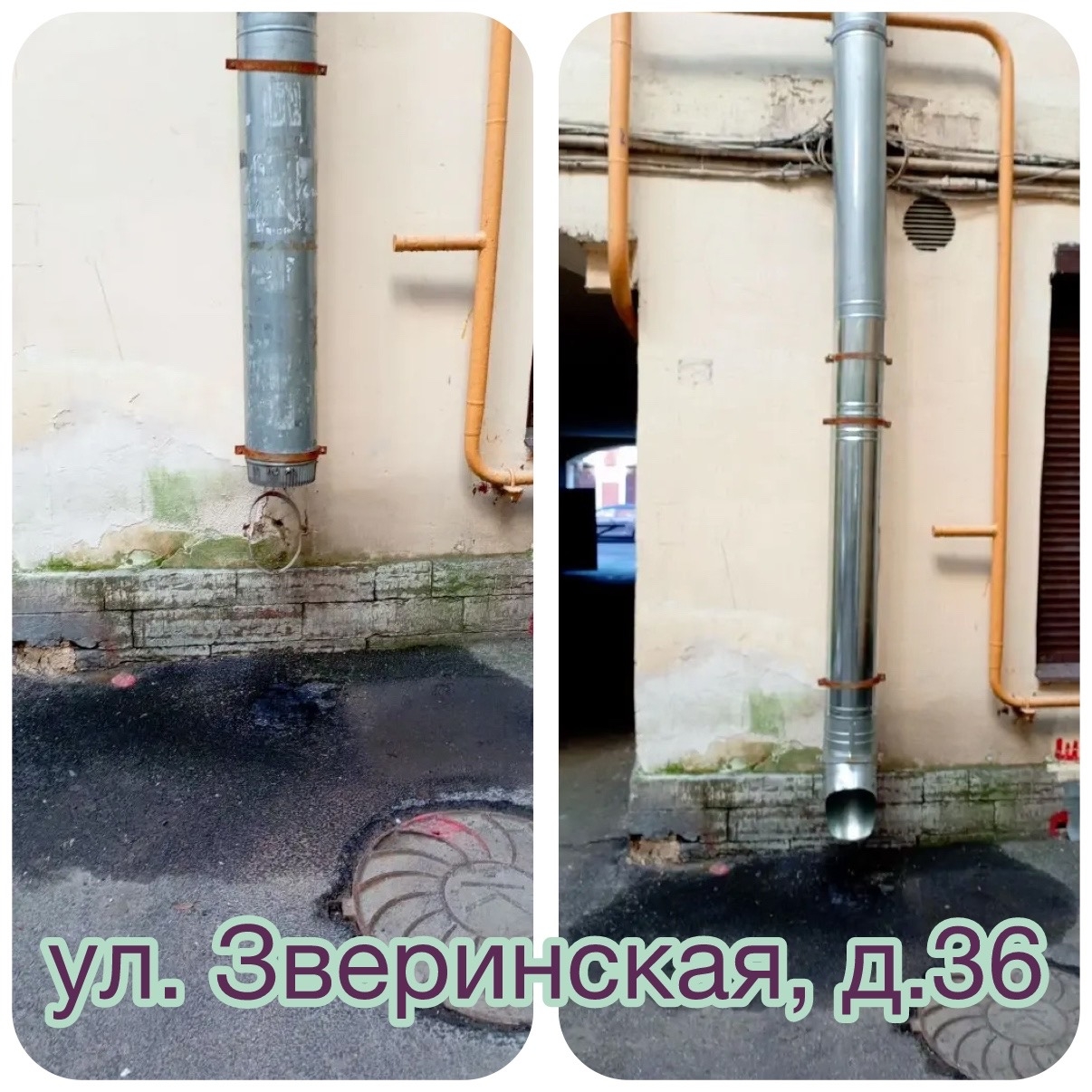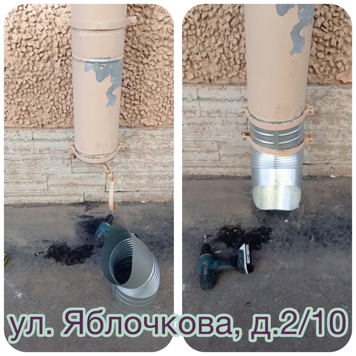 Вот так, элемент за элементом, наши кровельщики обновляют водосточную систему на ваших домах. Старые звенья демонтированы, новые установлены надежно и красиво.