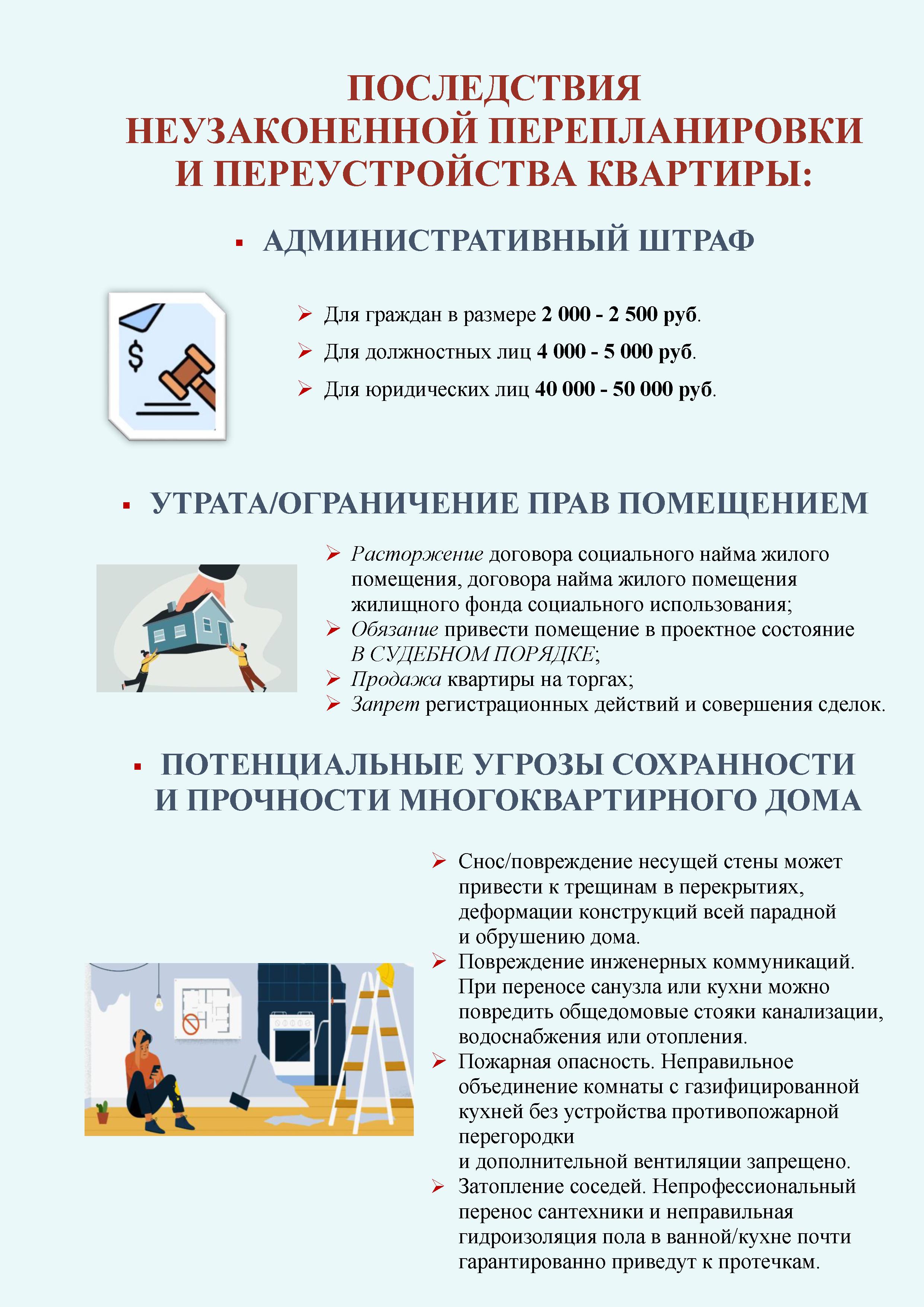 Самовольное переустройство и (или) перепланировка помещения в многоквартирном доме влечет наложение административного штрафа:
